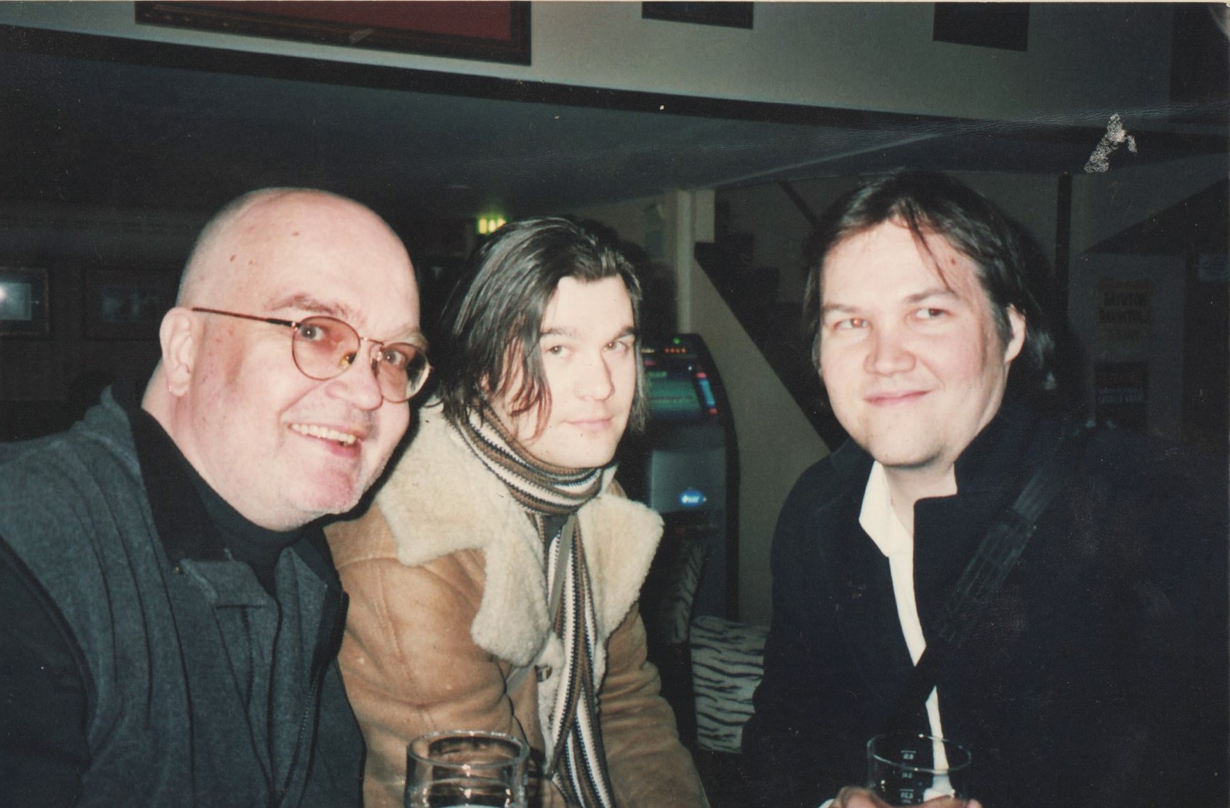 Vasemmalta Jorma Kekki, Teemu Juutilainen ja allekirjoittanut. Kuva on otettu joskus 2009-2010 vaiheilla Paapan Jazzkapakassa Runokaraoke-klubin jälkeen.