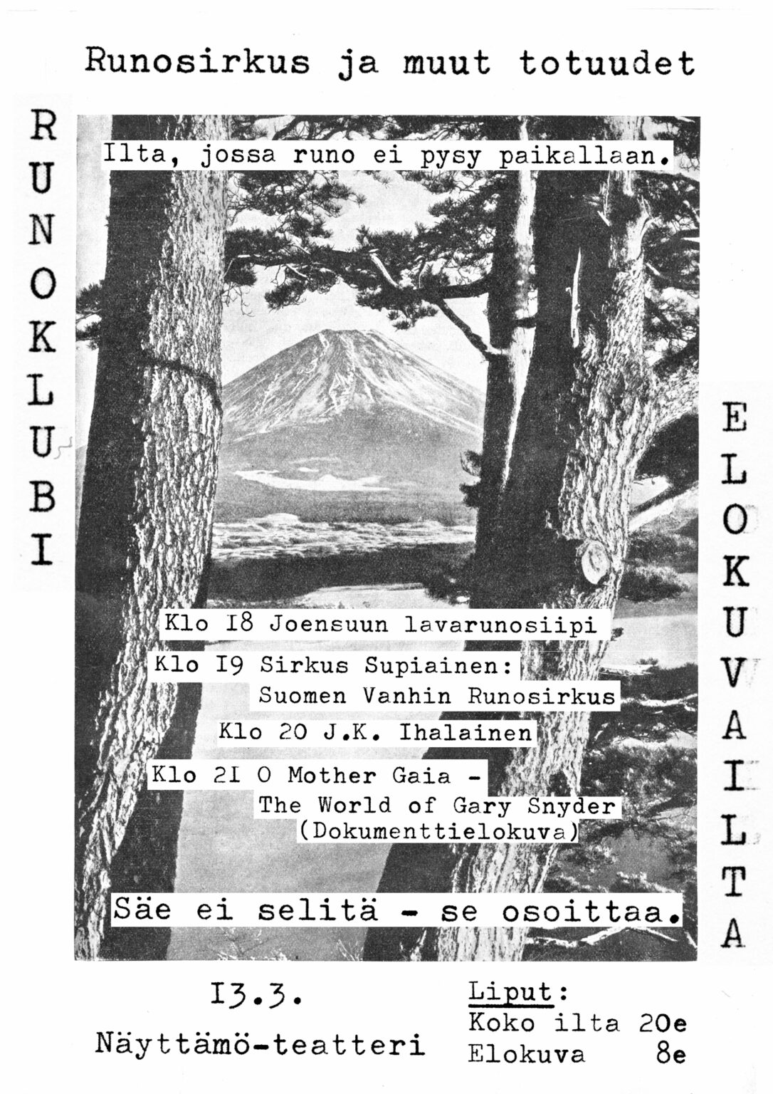 Runoklubi Joensuun NÄYTTÄMÖ-teatterissa 13.3.