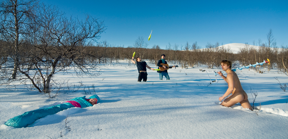 ”Koko maisemareitin ajan katselimme sopivaa paikkaa valokuvausta varten. Joonaksella oli visio Miikasta pilkkimässä, sitä varten matkaan oli otettu kaira ja pilkkikamat. Kevon luonnonpuistossa kyllästyimme odottamaan oikeita järvimaisemia ja kurvasimme tien sivuun. Lopullinen visio aukesi nopeasti.”